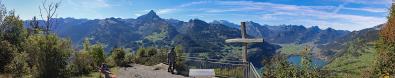 wo man unvermittelt aus der kargen Enge in die weite Fülle tritt! 6 HF-Bilder mit f/6,8, 1/750s, 100 ISO, 48mm (KB) Blickwinkel ca. 110° Richtung S, CH-Koord. 785.430/181.470 |
