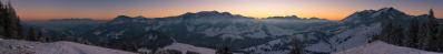 Wer ihn nicht kennt, es ist fast der Hausberg des Herzogstandhauses. Links sieht man nicht etwa eine Seilbahnstütze für die Gipfelfahrt sondern eine Stütze der Lawinensprengbahn... 360° bei 35mm |