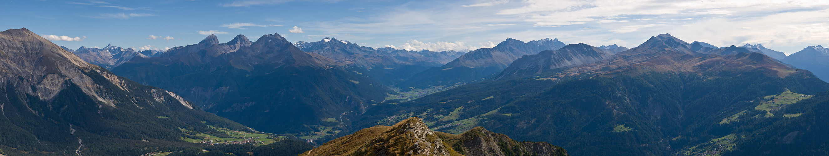 Ganz lassen konnte ich es aber nicht, so fuhr ich mit der Sesselbahn hinauf zum Piz Scalottas. Ist auch mal schön, so auf dem "Sofa" eine halbe Stunde aufwärts und eine halbe Stunde abwärts ganz gemütlich die Aussicht zu geniessen :-)) 13 Hochformatbilder bei Brennweite 108 mm (KB). |