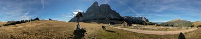Ein herbstlicher Ausflug hat uns an den Fuß des Peitlerkofels (Sass de Pütia) geführt. Das Wetter ist bescheiden, das Essen am Vorabend aber so gut, daß das (mehrstündige) herumstreunen auf den weiten Wiesenflächen gerade recht gekommen ist. Dirk Becker hat uns übrigens letztes Jahr einen ähnlichen Blick - nur rund 100m weiter am Weg - präsentiert (#8260).