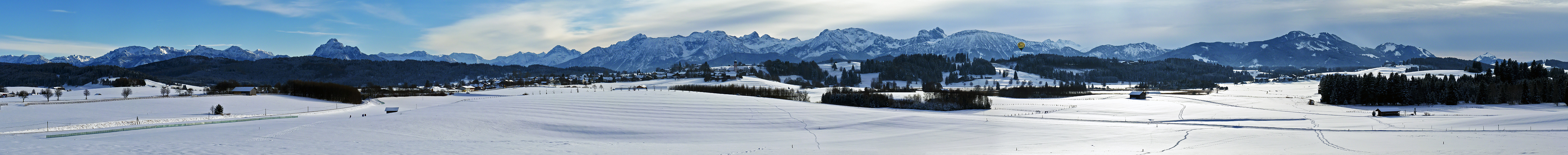 Also nach Hause gedüst, die Schneeschuhe gepackt und ab in die "Prärie". Leider zogen dann doch ziemlich bald ein paar Wolken auf, die vor die Sonne schwebten. Trotzdem war es eine herrliche Wanderung durch meist unberührten Schnee. Für mich ein Glücksgefühl. Danke lieber Fritz. Die Aufnahme zeigt aber wieder mal die gleichen Berge, die da immer so ´rumstehen, diesmal aber verziert mit einem Ballon, der im Laufe seiner Fahrt auf mich zukam und nicht weit von mir ankerte. Allen Alpenpanoramen-Süchtigen wünsche ich ein gesundes neues Jahr, allzeit gutes Licht und Inspiration. Ein egoistischer Wunsch von mir, möchte ich doch auch nächstes Jahr so viel Freude auf dieser Plattform haben wie bisher. Panasonic Lumix DMC-TZ10 29 Hochformat-Aufnahmen, freihand 128mm kb, F6.3, 1/640, ISO-80 Autopano 2 Camera Raw Photoshop Elements 7 U. Deuschle