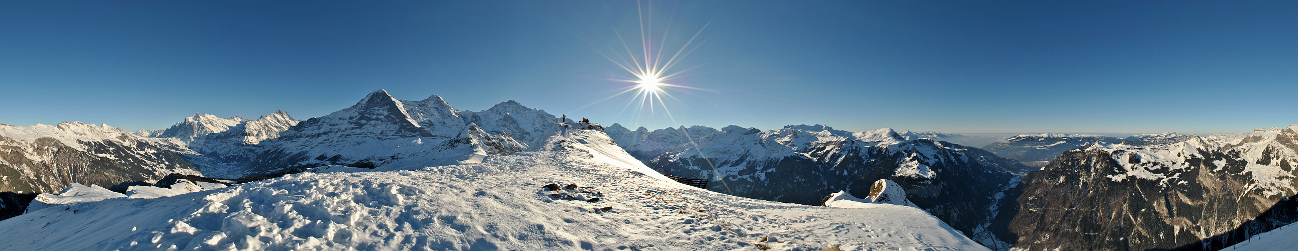 Ich habe es als Tourist auch mal panoramisiert und lege Wert darauf, zumindest an jenem Tag ohne Aufstiegshilfen von Wengen auf den Männlichen gekommen zu sein (als Tourist natürlich per Tourenski, Aufstieg über die kleine Scheidegg...)