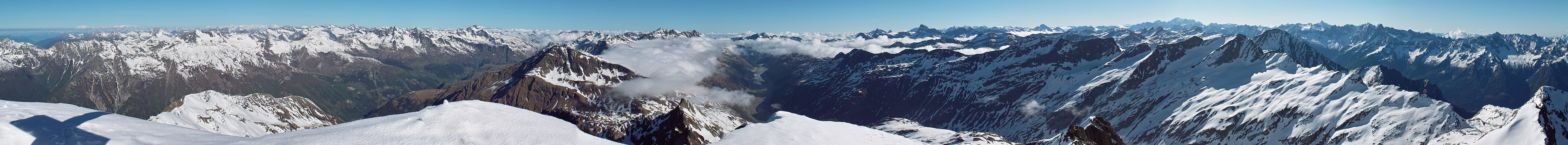 Mit Ski leichter erreichbar als im gerölligen Spätsommer. Ich versuche es nicht mehr. (war zwar schon oben als ich aber noch nicht Pano-infiziert war! ( :- )) Mir genügen die leichten tausend Meter auf den Pizzo Groppera.