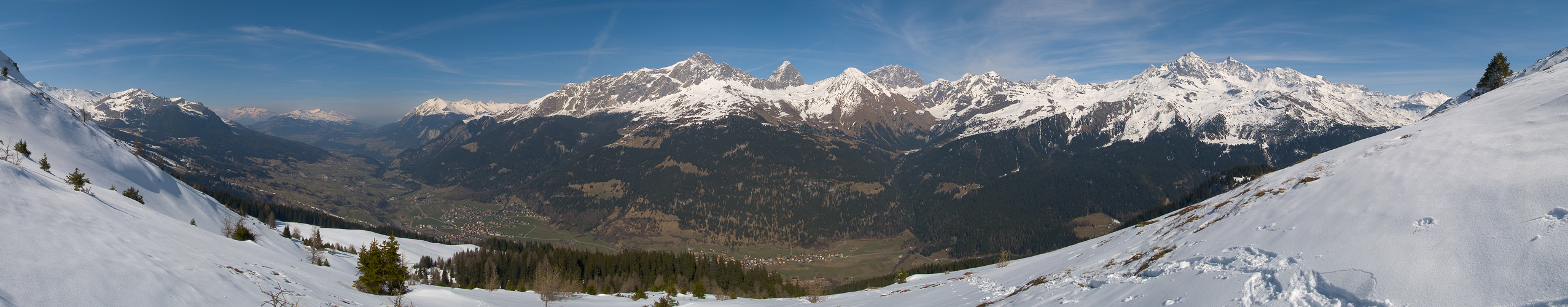 Hier noch ein Panorama aus dieser Gegend mit kleiner Brennweite aus etwas höherem Standort. Von hier aus hat man wieder freie Sicht ins Tal.
