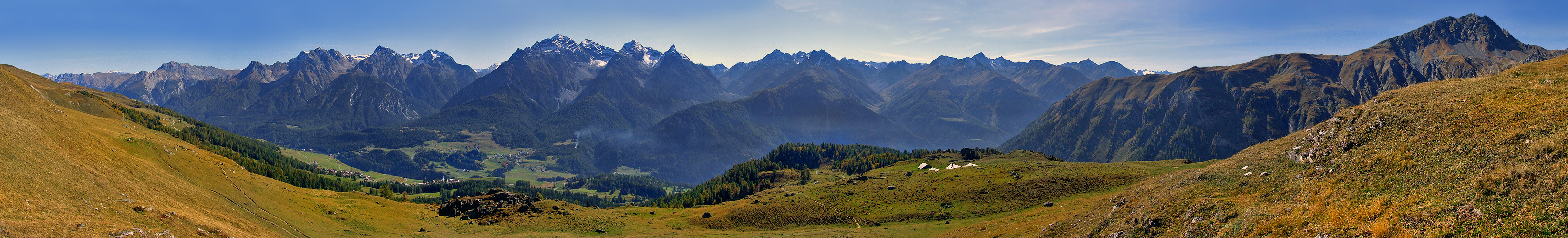 Die 'Via d'Engiadina Bassa' zieht sich dem ganzen Südhang des Unterengadins entlang und vermittelt prächtige Ausblicke auf die gegenüberliegenden 'Engadiner Dolomiten'!