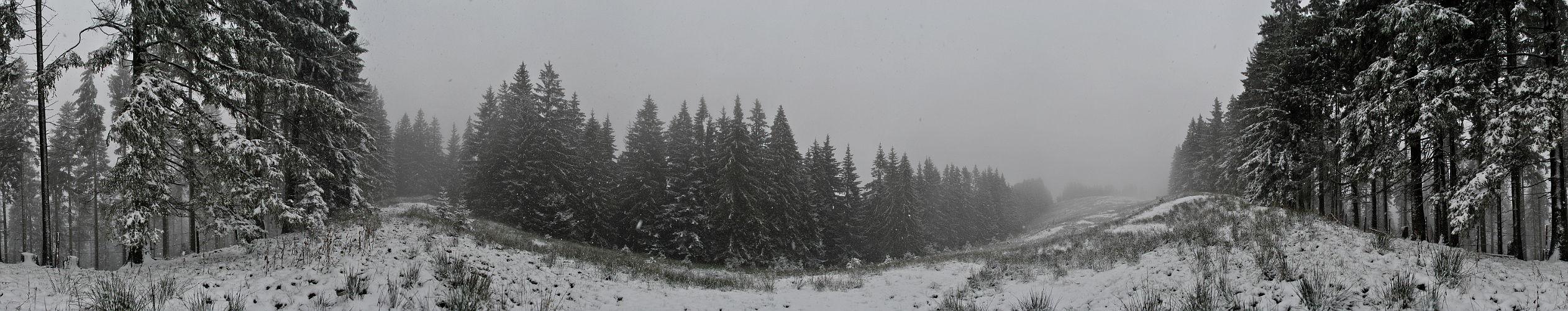 In dieser Richtung hätte man eigentlich eine schöne Sicht gehabt. Dafür war die frische Luft herrlich und auch so war heute erstaunlich wenig los... Egal, stelle mal das Pano rein zur Dokumentation ein, um den aktuellen Wintereinzug zu zeigen. Werde es die Tage wieder rausnehmen... 12HF 1/200 F/5.6 ISO100 18 mm Ach ja... dies ist übrigens kein s/w-Pano. Es war wirklich so blass (gut erkennbar an dem roten Farbpunkt unten an dem Zaunpfosten ganz links)...