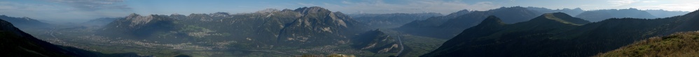 Zum dritten Mal in diesem Jahr via Türlerweg über die Schaner Alp hinauf bis zum obersten der Flidachöpf. Mitgeschleppt habe ich eine andere Eisenstange zur Befestigung des Panoramas. Die Stellung des Panoramas richtet sich nun entsprechend der Windrichtung.