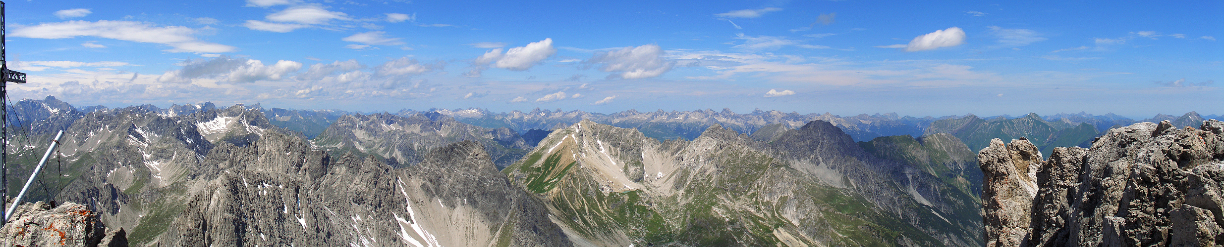 Das Panorama von der Dremelspitze, einem der formschönsten Gipfel der Lechtaler Alpen, bietet im Norden einen umfassenden Überblick über den Lechtaler und Allgäuer Hauptkamm.