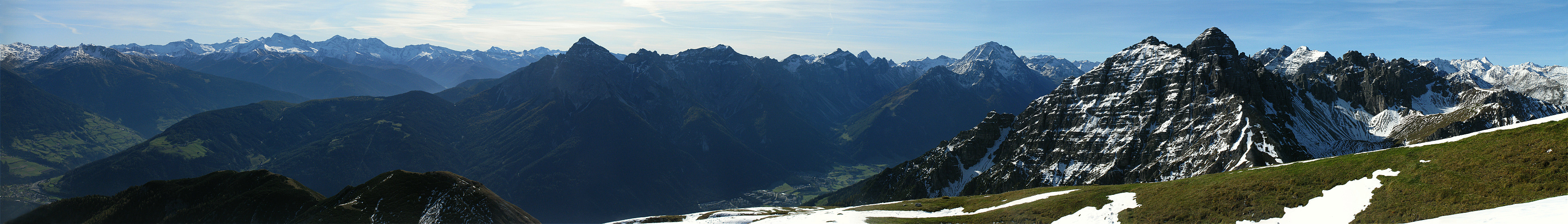 Da trotz Revision der Bergbahn der Gipfel immer noch recht gut besucht war konnte ich kein 360° Pano anfertigen. Deshalb nur der Blick auf die bekannten Gipfel im Zillertal und Stubai... Ein paar technische Daten: Canon Powershot G9, 20-Hochformataufnahmen, freihändig, ISO 200, 1/2500s, F/5, Brennweite: 17 mm (= 79,5 mm KB)