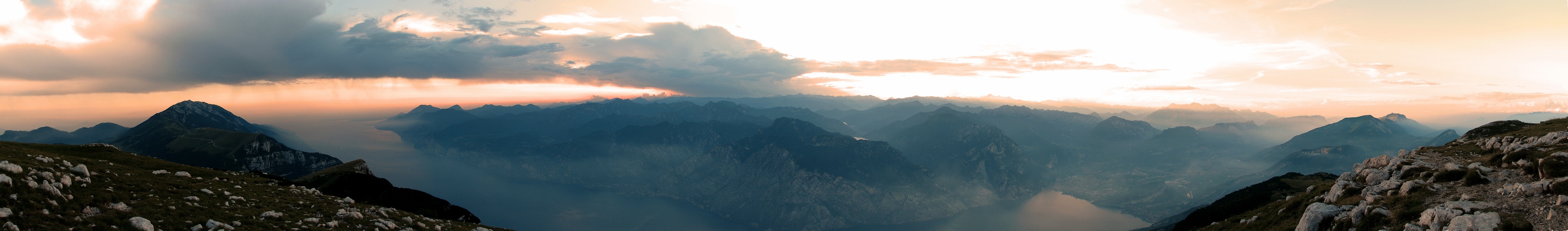 Nach einem Gewitter kommt abends bei einer Monte Baldo-Überschreitung die Sonne noch mal raus wobei sich Reste noch über dem Baldo-Hauptkamm entleeren. Farblich ursprünglich einfach zu blau, deshalb nachbearbeitet.