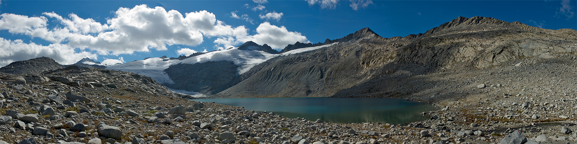 Das Lares-Tal im Naturpark Adamello-Brenta gehört wohl zu den ursprünglichsten des gesamten Alpenraums. Kein Wunder dass hier die letzten Bären der Zentralalpen bis in unsere Tage hinein überleben konnten. Durch den starken Rückgang des Lares-Gletschers hat sich in neuerer Zeit der relativ große Lares-See gebildet, der auf diesem Panorama zu sehen ist. 7 Aufnahmen im Hochformat, wie immer aufgenommen mit der bewährten Kombination Nikon D2x + 28-70 mm und mit Hilfe von PTgui zusammengebaut.
