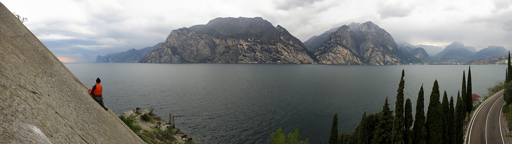 Bin mit dem meinem Sohn (10 Jahre, nicht im Bild) vor dem schlechten Osterwetter bei uns daheim an den Gardasee geflüchtet. Gleich angekommen unternahmen wir am "Corno di Bo" die ersten Plattenschleichversuche. Hat uns Spaß gemacht, mit Blick und in Absprunghöhe über dem See....