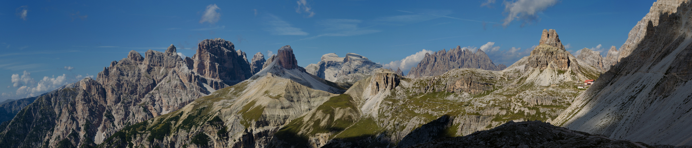 Die 3 Zinnen im Rücken, auf dem Weg zurück zur Refugio Tre Cime (Drei Zinne-Hütte) an einem wunderschönen Herbsttag!
