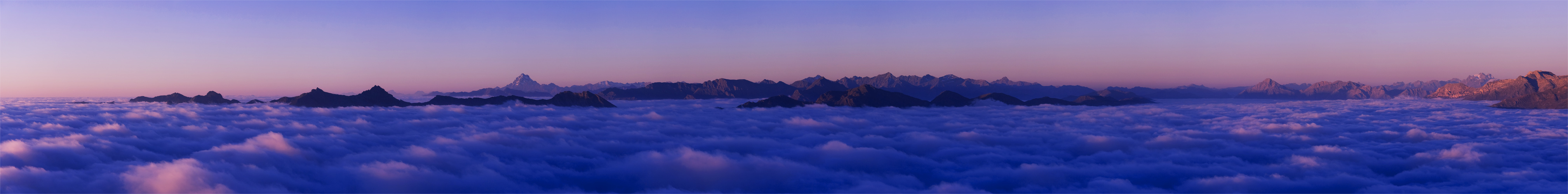 The highest summits emerge from a thick layer of clouds, while the Valle di Susa lies underneath. |