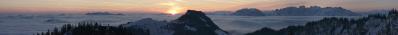 Die Wanderung vom Großen Traithen über den langen Ostkamm bietet ständig schöne Ausblicke rüber zum Kaiser und bei klarer Sicht wie an diesem Tag auch auf einige Berchtesgadener und auf den Alpenhauptkamm.