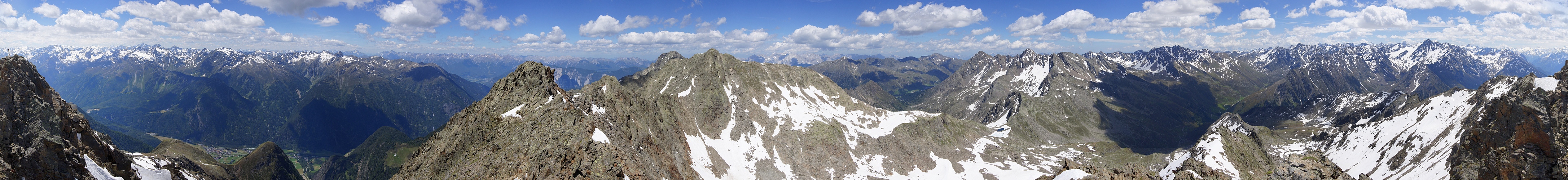 Von Niederthai Richtung Schweinfurter Hütte. Vor Erreichen der Hütte bei den Horlachalmen jedoch links weg zur Finstertalalm. Weiter ins Lange Wannenkar bis zur abschließenden Rinne. Weil diese im oberen Teil mit schwerem, nassem Schnee gefüllt war, querten wir etwa 50 oder 75 Höhenmeter unter dem Gipfel auf sehr gut gangbaren Bändern nach rechts aus der Rinne heraus und weiter über unschwierige, grasige Schrofen zum Südostgrat. Über diesen schneefrei zum Gipfel.