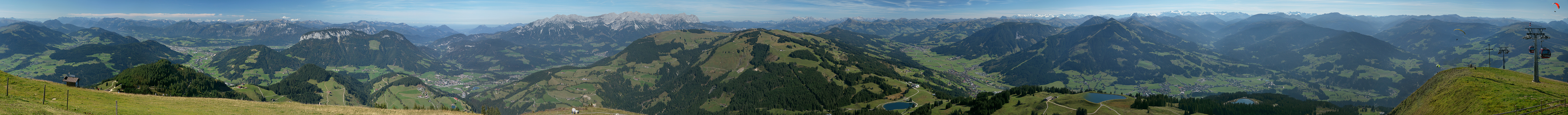 Für Nichteingeweihte: Der Gipfel der Hohen Salve ist besetzt von Gipfelrestaurant, Seilbahnstationen, Kircherl und Nebengebäuden, so dass man für ein 360er einige Standortwechsel verarbeiten muß. In diesem Fall habe ich auch noch eine Hauptsächlichkeit wegfallen lassen, nämlich die nordseitige Gondelbahn. Sie hat mich zu sehr beim Zusammenbau gestört. Ein kleiner Vorteil war, dass es keine nahen Tiefen gibt, die man vermissen könnte. Deshalb gabs für die Fernsicht deutlich mehr Brennweite als sonst und weniger störenden Vordergrund beim Stitchen. Ca. 370 Gipfel, die mehr oder weniger deutlich erkennbar sind, konnte ich hier dank udeuschle beschriften. Auf dem Original sinds natürlich wesentlich mehr, ich schätze, dass mindestens doppelt so viele als Gipfel identifizierbar wären. Samsung NX 200 34 x HF, RAW f = 45 mm (KB = 69 mm) gestitcht mit Panoramastudio 2 Ausrichtung des Horizonts nach udeuschle Beschriftung größtenteils nach udeuschle