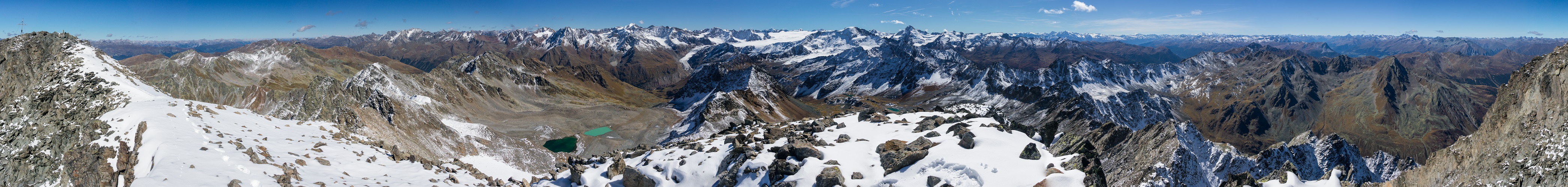 Wahrlich ein Prachtstag und was für ein schönes Pano du mitgebracht hast. Einmalig was man von dort oben alles sehen kann - interessant auch die Verschiedenfarbigkeit der kleinen Seen. VG HJ