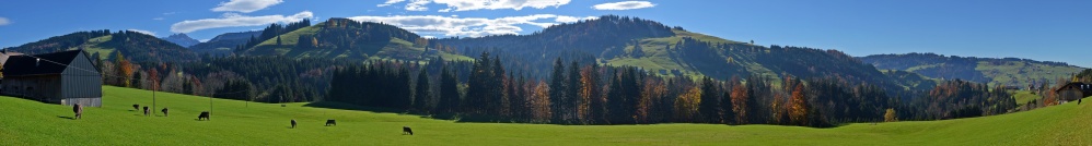 Eine Kostprobe aus den Appenzeller Voralpen. Freihand, Nikon D7000, 55 mm, f 10, 1/320 sek. , 100 Iso. Natürlich, mit "So nicht-Attributen" ;- )) (Haus, Masten.)