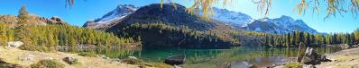 hat man einen tollen Blick auf das obere Prättigau mit Pany, Saas, Serneus und Klosters, gekrönt mit li Weissfluh und Casanna, Vilan, Schesaplana, Drusenfluh, Madrisa bis re Schildflue. Freihandpano aus 8 HF-Aufnahmen mit f/9, 1/1000s, 100 ISO, 36mm (KB) Blickwinkel ca 200° Richtung N