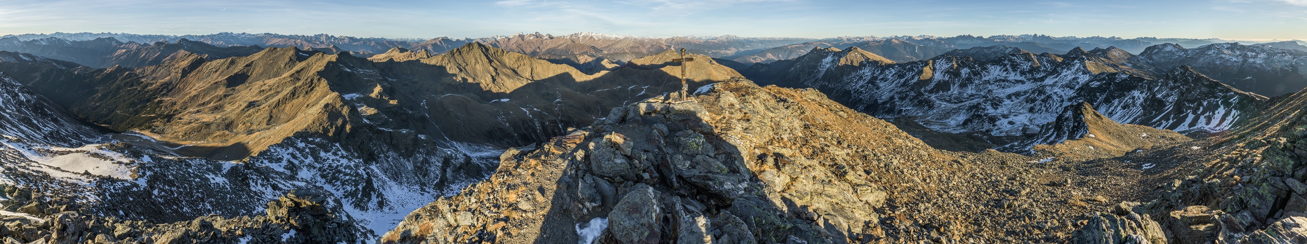 Die Jakobsspitze bietet eine grandiose Aussicht auf Dolomiten, Ötztaler, Stubaier, Ortler Alpen sowie in die Tauern und Rieserferner.