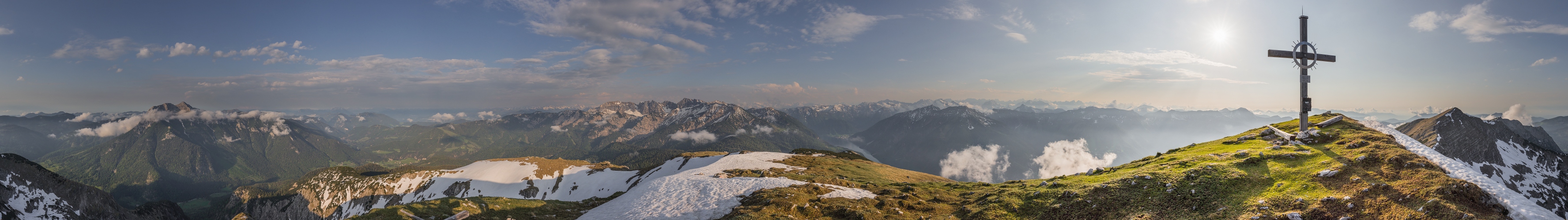 Rundblick vom Vorderunnütz an einem warmen Frühlingsabend Ende Mai.