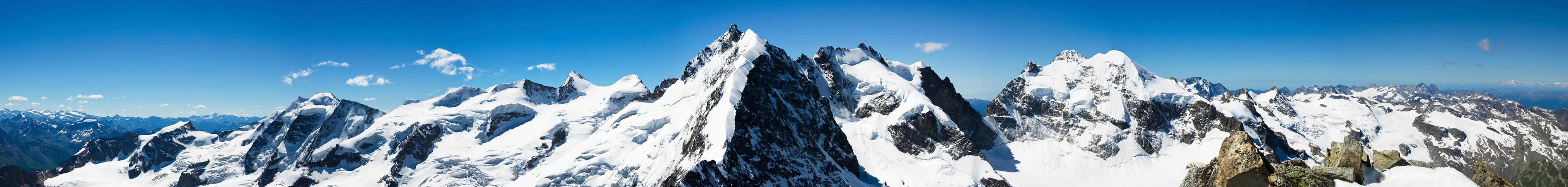 Wenn man auf dem Piz Morteratsch steht, erfreut man sich an der unglaublichen Schönheit der Bernina rundum, - und Mittelpunkt der Aussicht und der Begierden natürlich, - ist und bleibt der Biancograt.