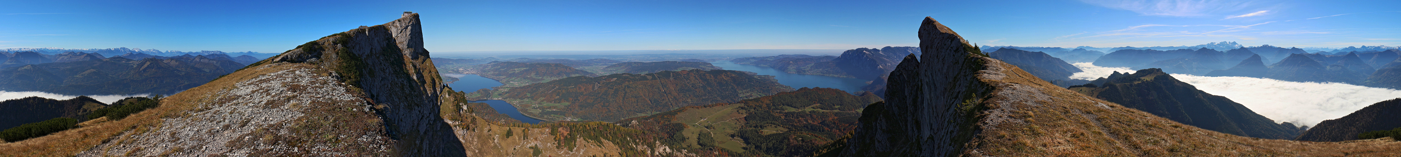 Nachdem ich am Gipfelkreuzes und der Himmelspforte war, ging ich weiter zum Haus Schafbergspitze. An diesem Tag waren sehr viele Wanderer und Touristen unterwegs, daher ging ich weiter Richtung Spinnerin, dabei entstand auch dieses Panorama!
