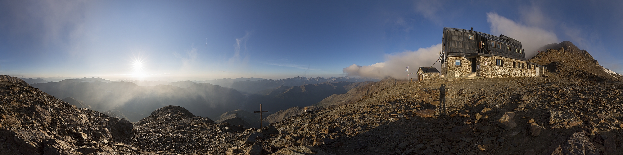 Nachdem es zwischenzeitlich rund um die Hütte nochmals zugezogen war, riss es kurz darauf schon wieder auf und ich erstellte noch schnell diesen 360° Rundblick (quasi als Backup für die schon gezeigte Variante...).