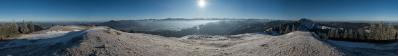 Wir entdeckten einen windgeschützten Platz wenig unterhalb des Gipfelkreuzes, wo es verhältnismäßig windstill war. Am Kreuz selbst konnte man kaum stehen, weshalb dieses Pano auch eine kleine Herausforderung war ;-)