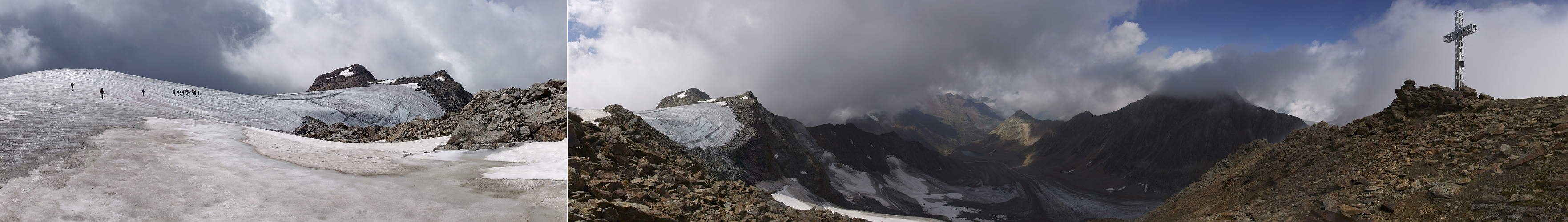 Da die Bergsteiger seilfrei marschieren nehme ich an, dass die Gletscherbegehung nicht allzu lange dauert.