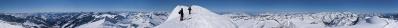 Nach einem recht wolkenbandgedämpften Sonnenaufgang auf der Edelweißspitze starten wir am Mittertörl-Parkplatz Richtung Spielmann. Der Schnee ist rippig und hartgefroren und verlangt Harscheisen. In der Spielmannflanke wird es weicher, und ein Schneeband führt noch bis auf wenige Meter an den Gipfel heran.