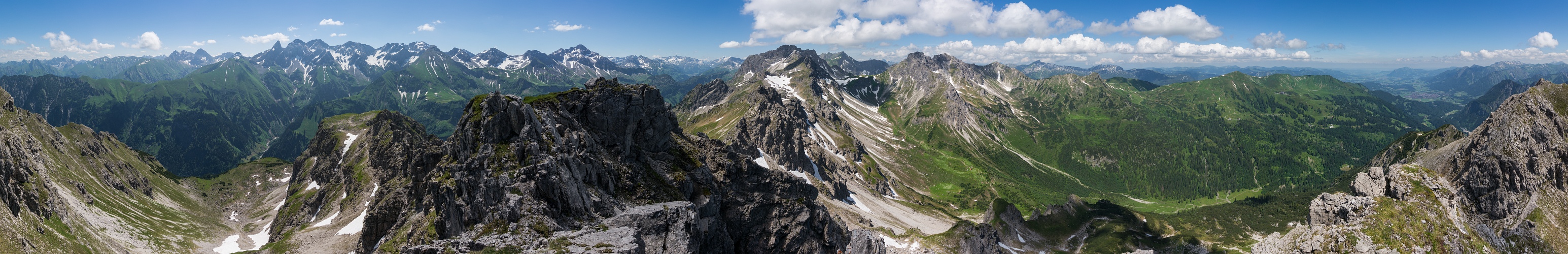Sehr gut beschrieben ist die Tour unter anderem hier: http://festivaltour.de/forum/thema/%C3%9Cberschreitung-von-ro%C3%9Fgundkopf-2-139m-alpgundkopf-2-177m-grie%C3%9Fgundkopf-2-164m.1074/ Schnee war auf dem Grat selbst nicht mehr vorhanden, ging alles problemlos. Es ist halt sehr brüchig und weglos, daher rührt wohl die Einsamkeit. Obwohl die bekannten Gipfel so nah sind. Mit diesem Panorama möchte ich mich dann erstmal in meinen zweiwöchigen Skandinavienurlaub verabschieden. Bis bald ;-) Aufgenommen mit einer Sony NEX-6, Brennweite 22 (33)mm, 14 Hochformat-Einzelbilder. |