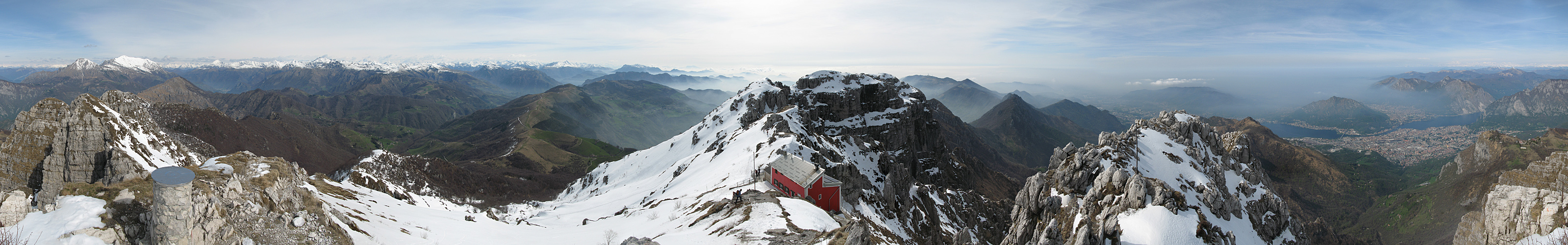 Für dieses 360° Panorama vom Resegone Gipfel musste ich die Bilder von 5 verschiedenen Standpunkten aufnehmen, da der Punta Cermenati mit eine enormes Kreuz und treppenhaus (sehen panorama 3253 von Stefano) komplett überbaut ist.