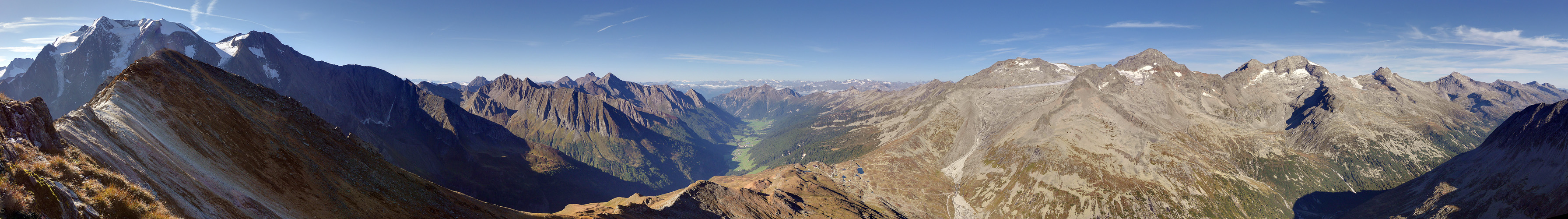 Lang war ich nicht hier im Forum, aber letzten Sonntag ist mir mal wieder ein Traumpano vor die Linse gekommen. Morgens früh von der Pfitscherjochhütte aufgestiegen. Bin extra auf den Nebengipfel geklettert, um die massive Tuxer Kette unverstellt hinzubekommen. Dafür sieht man jetzt den Hauptgipfel links im Vordergrund, aber der ist mit seiner Ansammlung von bunten Mineralien auch sehr sehenswert. Ortler Alpen, Ötztaler und Stubaier sind ziemlich winzig, sieht man besser auf Google Photo: