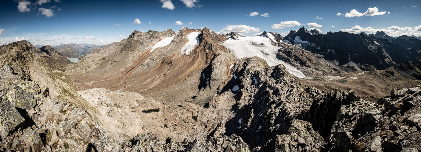 Blick von der Tällispitz (2842m) - auf dem Grenzgrat zwischen Österreich und der Schweiz - hinüber zur Silvretta.