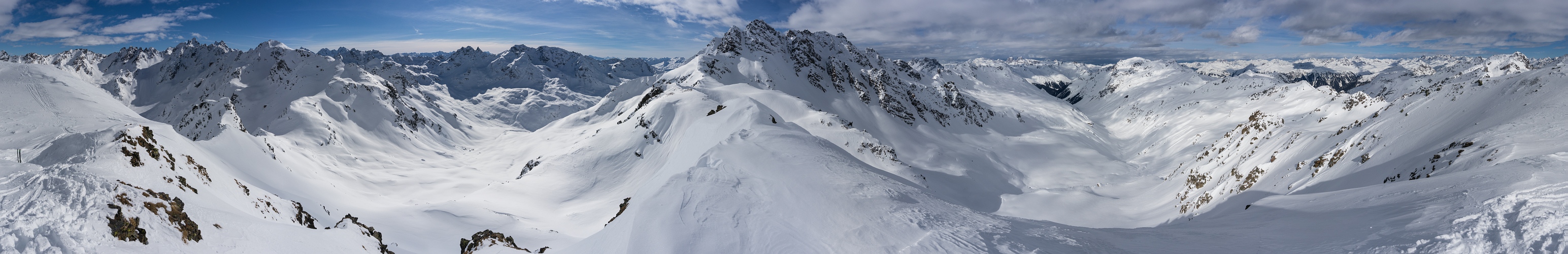 Statt der Abfahrt entlang der Aufstiegspur konnte ich dann immerhin noch zwei komplett unverspurte Hänge genießen: den Südosthang ins Garneratal und, nach erneutem Aufstieg, die Nordwestflanke direkt vom Gipfel runter (beides um die 40°). Sehr empfehlenswert und scheinbar noch nicht allzu bekannt :-)