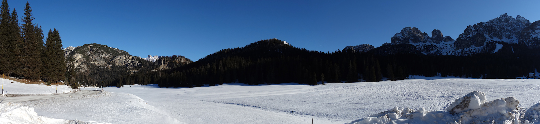 Von Schluderbach kommend, nach Misurina fahrend, kurz vor der Abzweigung zur Auronzo Hütte, verstecken sich hier noch die 3 Zinnen. Den Monte Piana hast Du bereits voll im Blick. Herrlicher Standort für Skitouren.