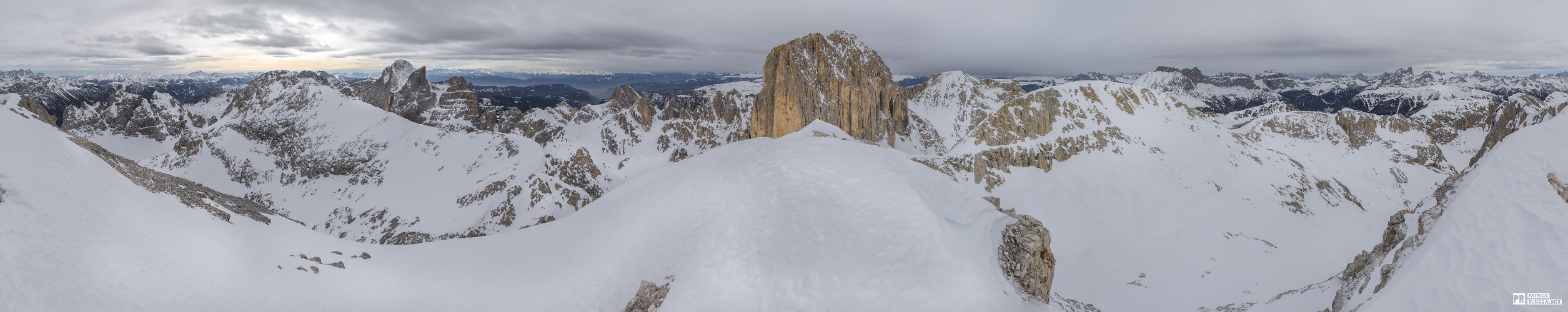 Die Tour startet in Muncion (Val di Fassa), führt vorbei an den Passo Principe und der gleichnamigen Hütte, weiter zum Antermoiapass, wo man dann rechts hoch hinauf zum Gipfel geht. 12 QF Bilder f 11, 1/500s, Bw 12 mm, Iso 100;