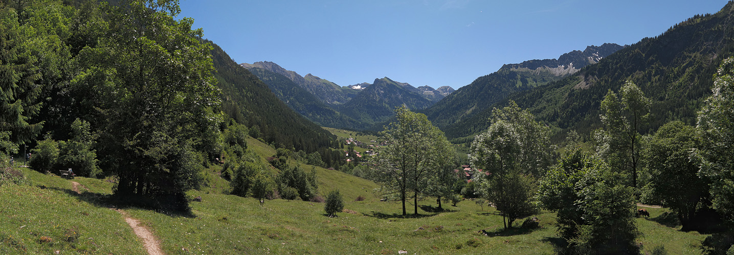 bevor es Winter wird noch ein Nachschlag vom Allgäu aus dem Frühsommer. Der letzte Teil des Bärenwegs nach Hinterstein ist eigentlich der schönste Abschnitt dieses Weges. So entstand kurz vor Hinterstein dieses Minipano, mehr ließ das enge Tal sinnvollerweise nicht zu. Leider ist das Mittagslicht sehr hart, zumal es an diesem Tag überhaupt keinen Dunst gab.