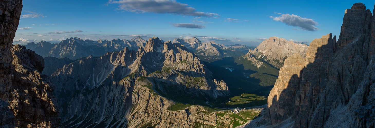Gut 1 Stunde nach #39032 waren wir zu dritt - Carlo, unser Bergführer immer voran - schon mitten im Anstieg zur Großen Zinne. Der Sonnenaufgang beim Anseilen in der Schlucht zwischen Großer und Kleiner Zinne war wunderbar, aber die Zeit für Fotopausen meistens nur kurz.