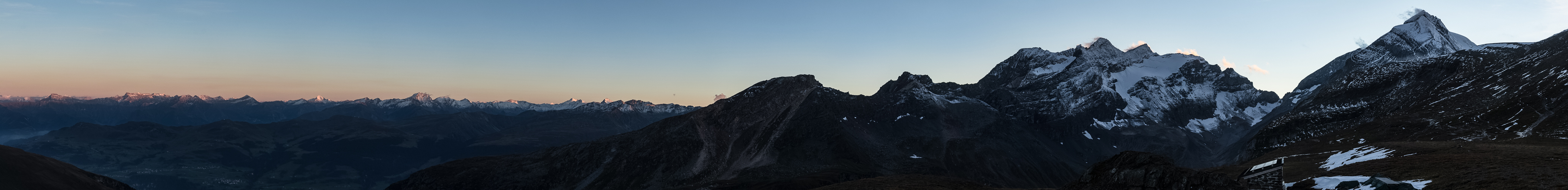 Ergänzend das Panorama vom Vorabend, nachdem sich einige Bündner Berge wolkenfrei gezeigt haben. 18 Aufnahmen, 55mm.