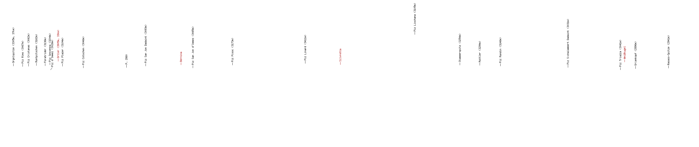 Am Ende des steilen Aufstiegs durch die Fora de l'Aua (Pano #40799) erreicht man am Lajet da Lischana eine grandiose Landschaft, nicht nur durch den See, sondern auch durch die von der Gletscherschmelze Ende des letzten Jahrhunderts freigegebene Hochebene um die Fuorcla da Rims, in der verschiedenfarbiger Stein im Geröll spannende Muster bildet. Vielleicht kann ich da noch etwas zeigen. Das Wetter blieb allerdings wolkig mit ein paar verstreuten Tropfen, und es ergab sich eine fast norwegische Stimmung (nur mit sogar in der Schweiz günstigerem Bier im Tal :-) Zwei junge Schweizer wollten wir den Weg zum Piz Lischana als zu anspruchsvoll und bei dem Wind sogar gefährlich ausreden -- vor Ort kam ich dann aber gut durch, auch bei meiner bekannten Zurückhaltung bei zu viel Luft unter den Füßen.