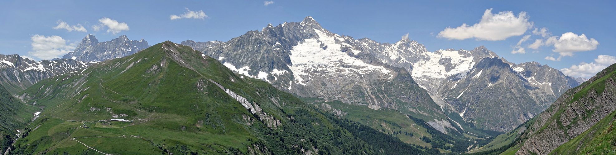 Zum Saison-Auftakt waren wir ins Wallis ins hinterste Val Ferret gefahren, um einmal mehr das Dreiländereck am Mont Dolent ins Visier zu nehmen. Zur Akklimatisation waren wir dort zuerst in einer gemütlichen Tagestour auf den Mont Ferret / La Tsavre gestiegen, von wo aus wir stets schöne Blicke auf die mächtige Kulisse der Mont-Blanc-Gruppe hatten und den Mont Dolent schon genauer studieren konnten.