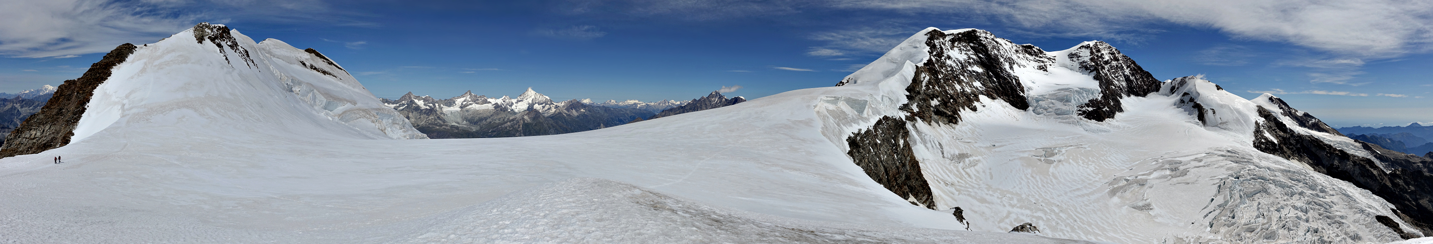 ..ist das Felikhorn nun wirklich - und aufgrund der geringen relativen Höhe gegenüber dem Felikjoch auch kein eigenständiger Gipfel, eher eine Firnkuppe zwischen den Größen von Castor und Liskamm. Dennoch eignet er sich ideal für eine kleine Rund-, bzw. Rückschau zu unserer gelungenen Traverse!