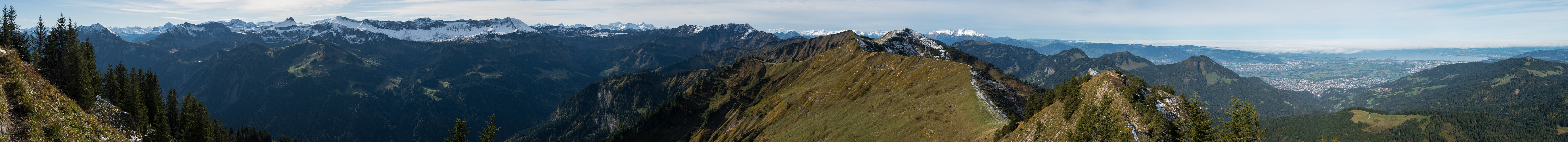 Gleicher Standort, etwas andere Blickrichtung als bei Panorama #32114. Diesmal ging´s von Mellau auf die Hangspitze und über den Dornbirner First bis zur Mörzelspitze. Beim Goselarkopf dann wieder hinab ins Mellental. Immer wieder schön im Herbst und auch bei etwas Schneeauflage unproblematisch.