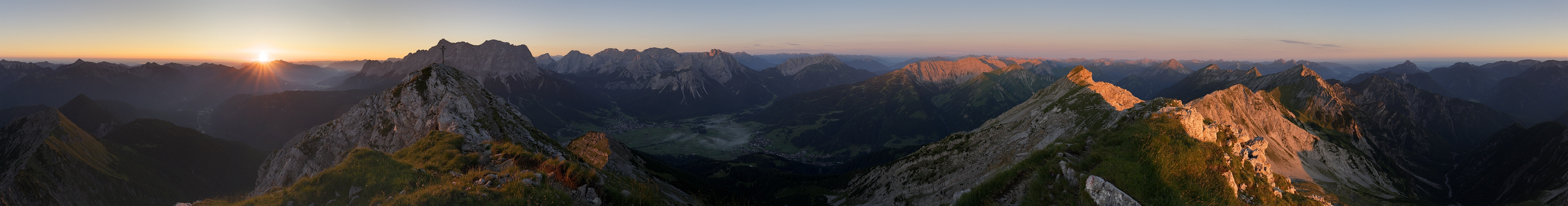 Da die Fahrzeit aufgrund von zwei Baustellen bei Garmisch um ca. 15 min länger war als vom Navi berechnet befürchtete ich das es knapp werden könnte, war dann aber doch schon um 10 nach 5 am Gipfelkreuz. So hatte ich noch genug Zeit, um die verschwitzten Sachen zu wechseln, das Stativ aufzubauen und eine erste Serie zu fotografieren, noch bevor die Sonne aufging.