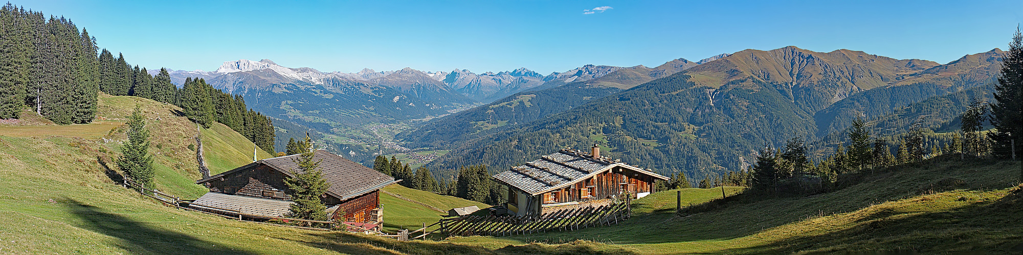 ...thronen diese beiden idyllischen Hütten mit aussichtsreichem Blick bis zur Silvretta.