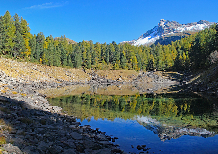 Das ist der Lagh da Saoseo (2029 m) im Val da Camp und der Berg heißt Corno di Dosdè (3232 m). An diesem schönen See war ich schon öfter. Der See ändert gerne seinen Wasserspiegel. LG Gerald.