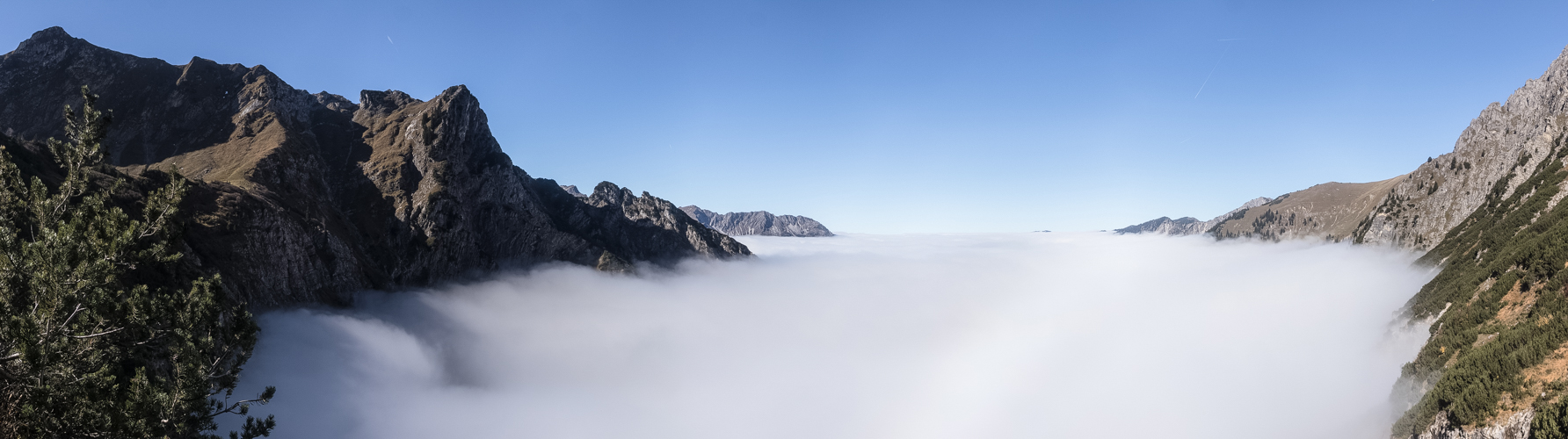Aufstieg zum Schrecksee von Auele. Es gelang der Weg aus dem Nebel. 18mm Aufnahmen.